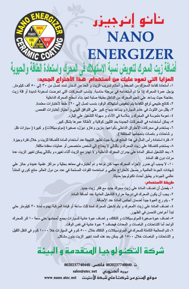 النانو تكنولوجي كأضافة لزيت المحرك العادي مصمم خصيصاً لمعالجة